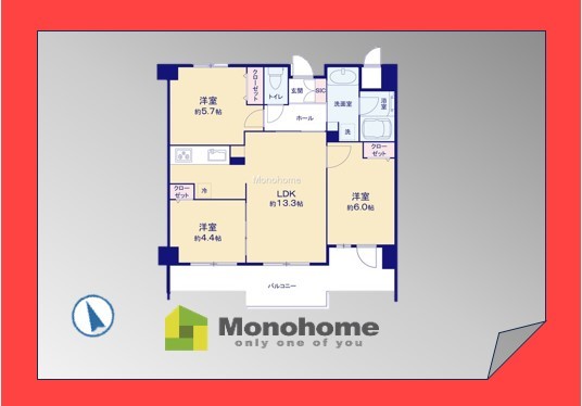 | 設備 | バルコニー、照明器具、フローリング、火災警報器(報知機)、給湯、収納 | ||
