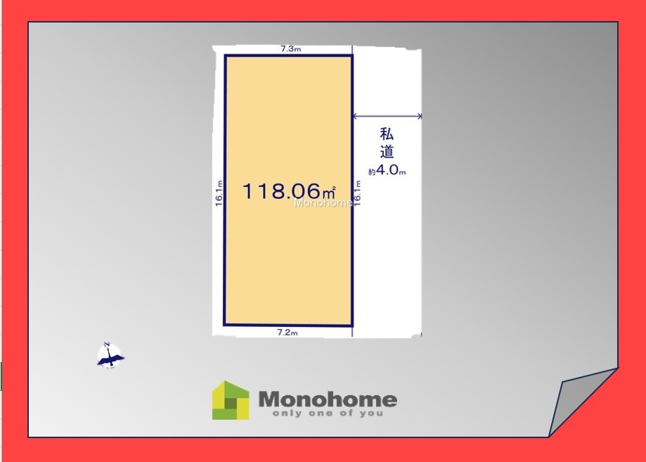 | 土地面積 | 118.06m² 実測 (私道162m²別に有、私道持分比率:3/15) | ||