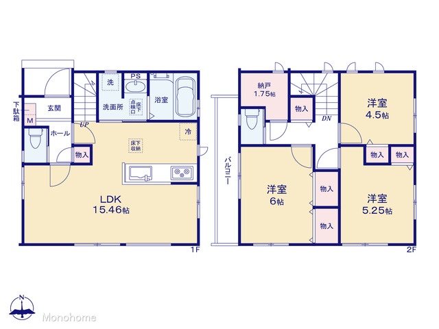 角地全室2面採光LDK15帖以上床下収納全居室収納食器洗浄機システムキッチン温水洗浄便座カウンターキッチントイレ2ヶ所全居室フローリング