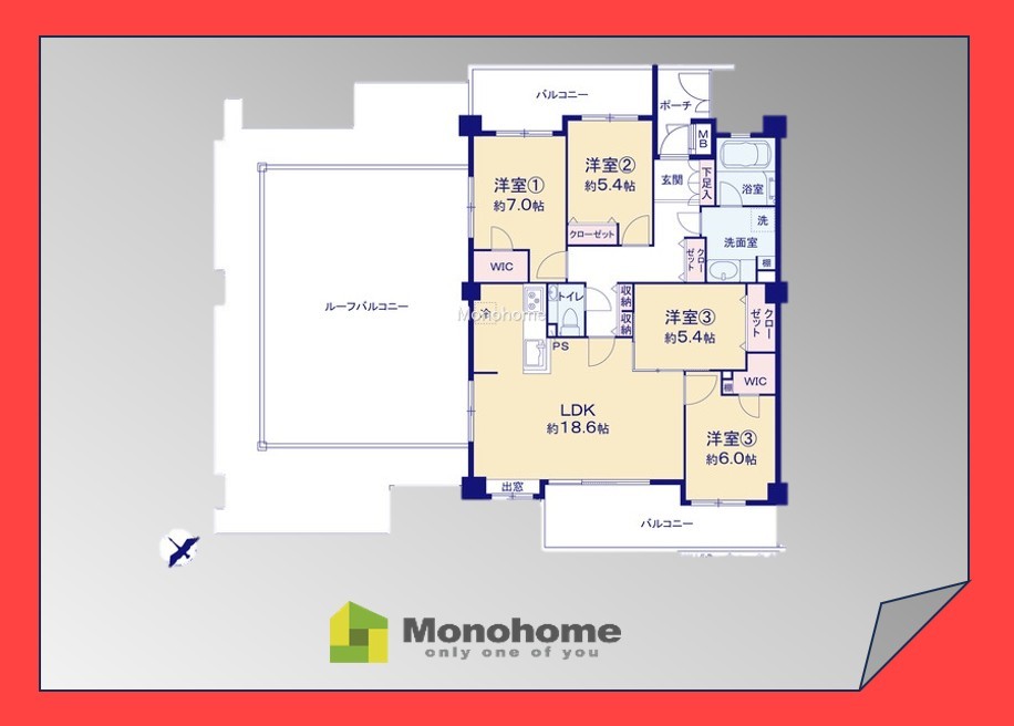 | 備考・制限等 | ポーチ面積:4平米 ペット:可(細則有。犬猫可。他の居住者に危害を加えない等、常識の範囲内での飼育が望ましい) ルーフバルコニー面積:53平米 ルーフバルコニー使用料:1060円/月 |