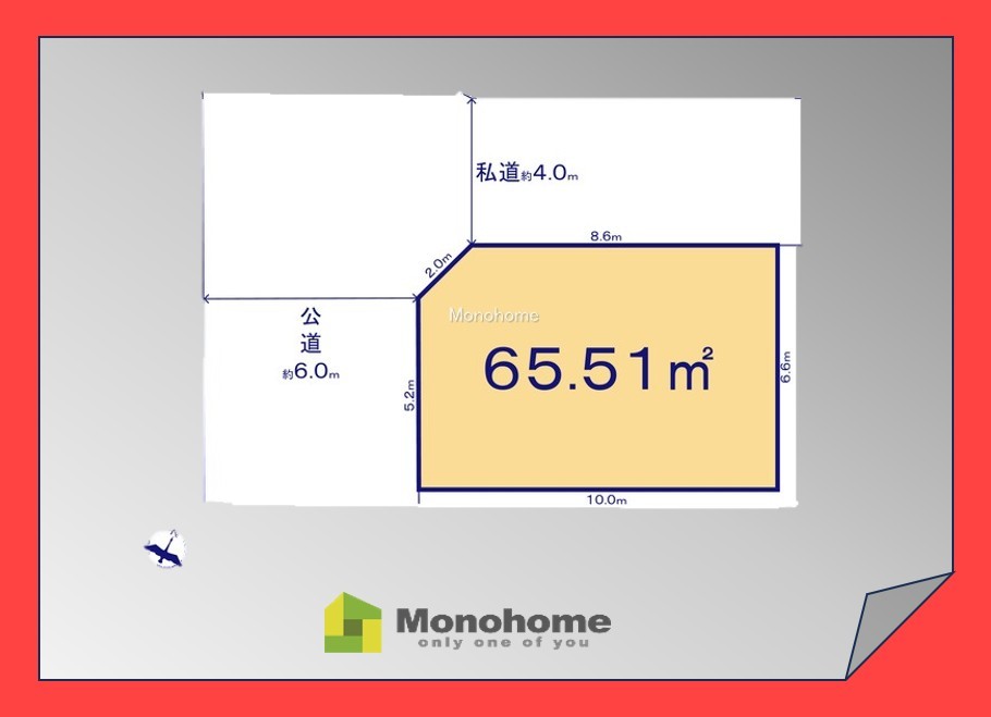 | 権利種類 | 所有権 | 接道 | 西側6M公道に接道 北側4M私道に接道 |